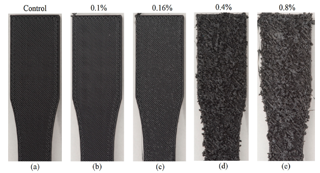 上图为PA6-CF不同含水量下的打印件表面质量